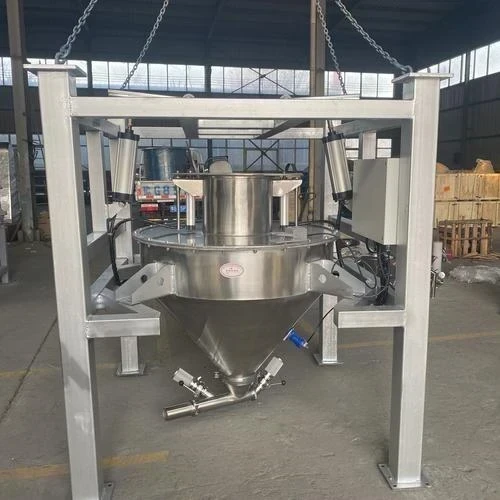 1.  吨袋包装机是用于吨袋物料和小包物料的大型辅助排料设备,它是集自动排料、除尘于一体的多功能解袋机,使吨包物料排料工序的处理非常方便。吨袋解袋机适用于矿产、化工、建材、粮食、饲料等行业的物料吨袋和小袋包装。